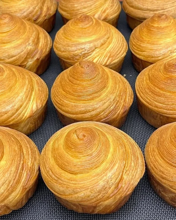 Freshly baked croissants by Chef Broich, showcasing traditional Viennoiseries techniques